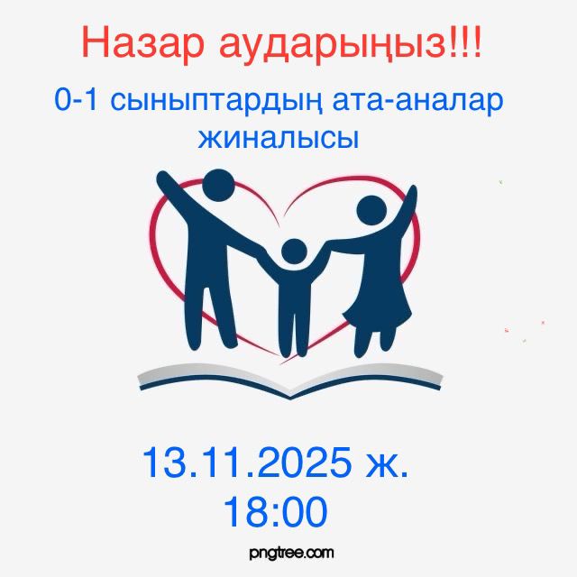 «№7 арнайы мектеп интернат» КММ әкімшілігі Сіздерді 2025 жылғы 13 қарашада сағат 18:00-де өтетін ата-аналар жиналысына шақырады.